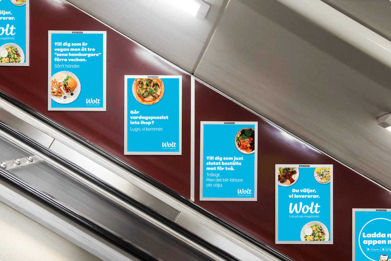 When RBK asked us if we wanted to join and help develop Wolt’s branding campaign in Stockholm. We said YES at once. The campaign was not only digitally scanned in various channels but also in purchased outdoor media around the city.