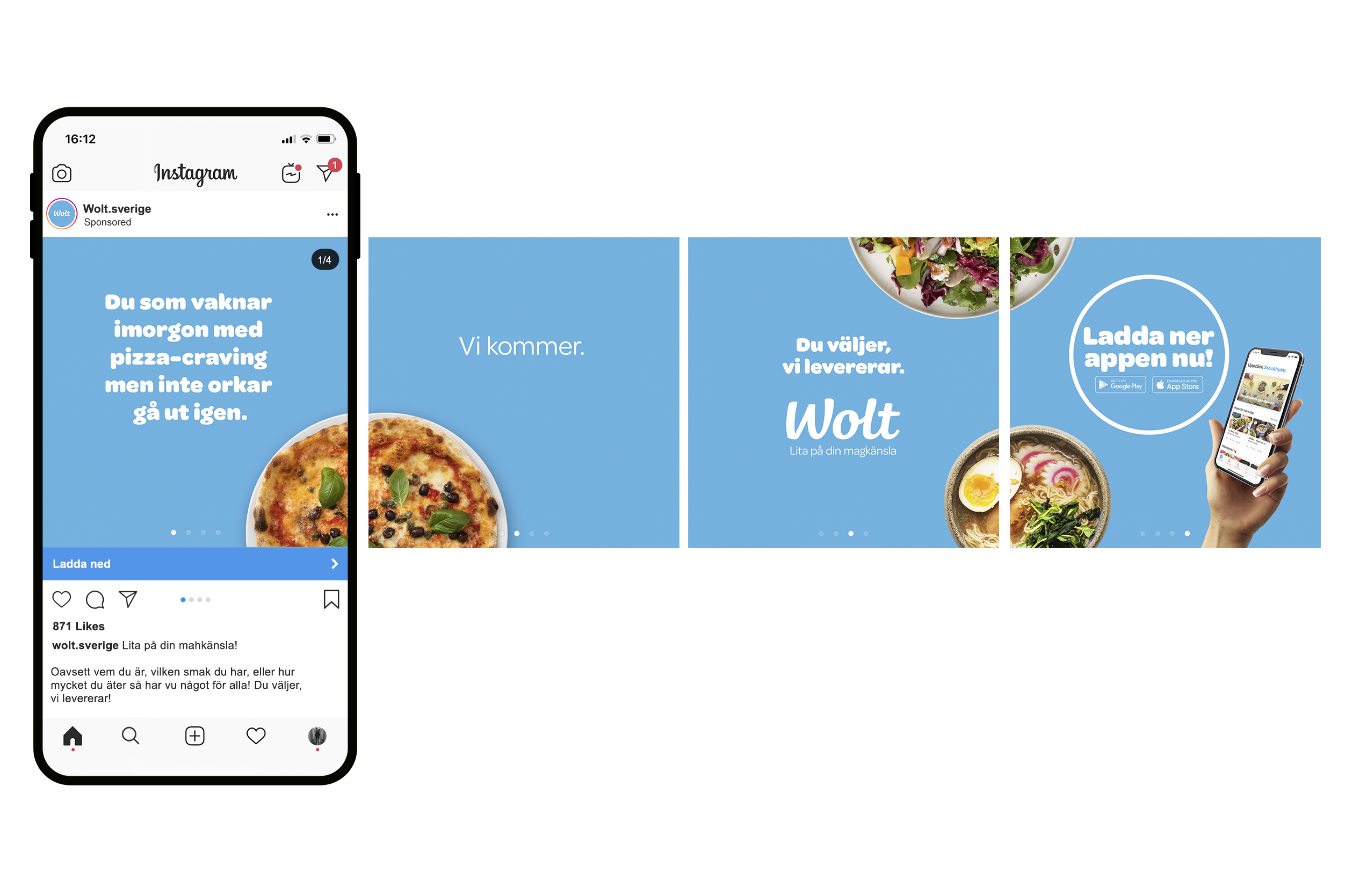 “Lita på din magkänsla” is the underlying theme of the campaign but since Wolt is largely a digital company, we have access to relatively large amounts of data. This was one of the starting points when the campaign began to take shape.